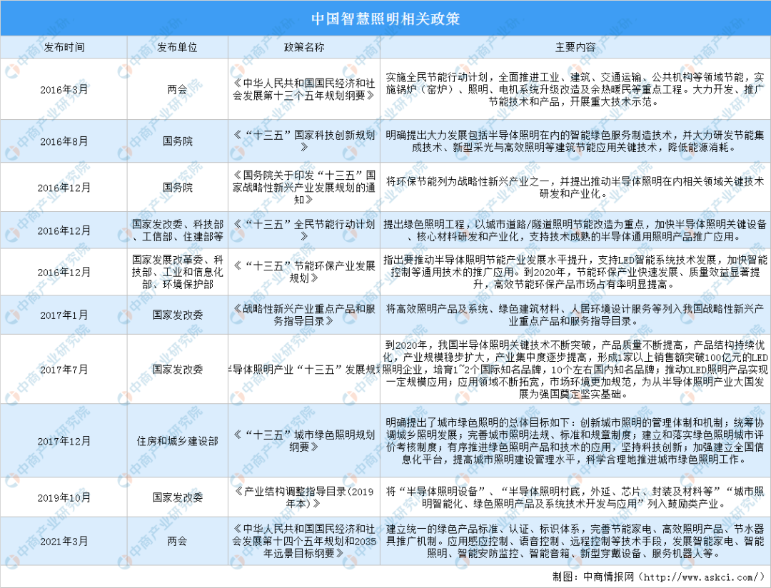 近年來,在萬物互聯(lián)的時代背景下,云計算、大數(shù)據(jù)、人工智能、物聯(lián)網(wǎng)等前沿技術(shù)給照明行業(yè)發(fā)展帶來前所未有的影響,智能照明進(jìn)入了飛速發(fā)展時期。中國重視智能照明產(chǎn)業(yè)發(fā)展,中國十四五規(guī)劃綱要提出,完善高效照明產(chǎn)品推廣機(jī)制,發(fā)展智能照明產(chǎn)業(yè)。
