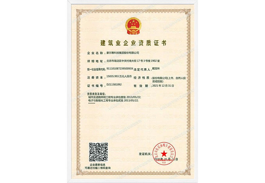 豪爾賽集團是國內(nèi)首批擁有住房和城鄉(xiāng)建設(shè)部頒發(fā)的"照明工程設(shè)計專項甲級資質(zhì)"和"城市及道路照明工程專業(yè)承包壹級資質(zhì)"的公司,并具備“噴泉水景、水處理、景觀噴灌、噴霧加濕設(shè)計、施工甲級”資質(zhì)證書。公司通過了 GB/T19001-2016 idt ISO9001:2015 & GB/T50430-2017質(zhì)量管理、 GB/T 2401-2016 idt ISO14001:2015 環(huán)境管理、 GB/T 45001-2020 idt ISO45001:2018 職業(yè)健康安全管理等體系認證、且獲得國家權(quán)威資信評估機構(gòu)的AAA資信等級認證。